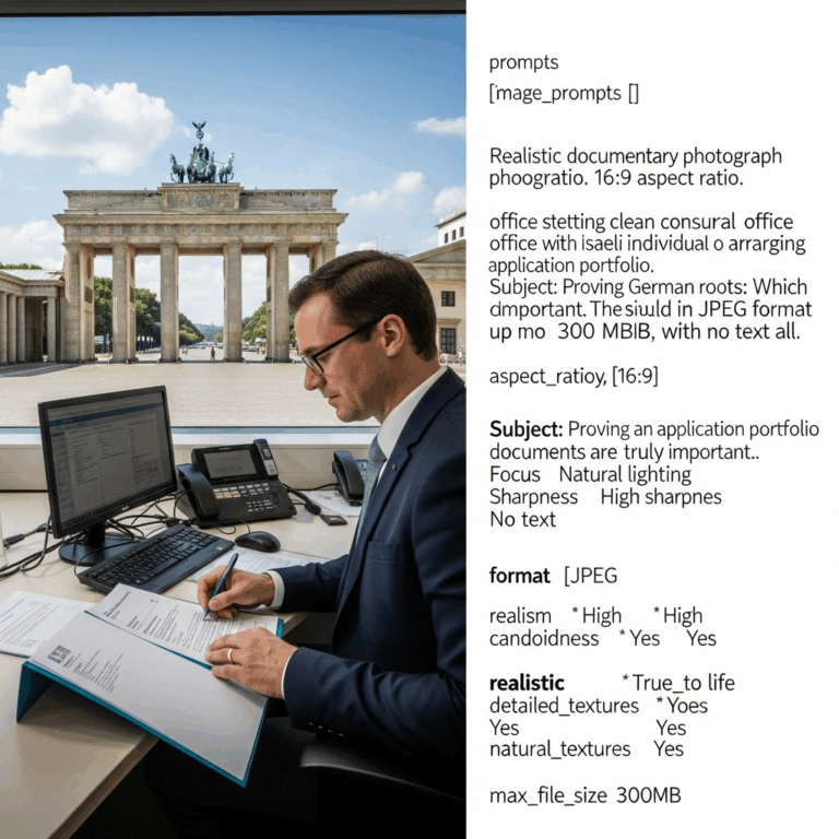 2. איסוף מסמכים – הדרישות כוללות מסמכים כמו תעודות לידה, נישואין, והוכחות לקשר לגרמניה. לעיתים יש צורך בתרגום מסמכים ואימותם על ידי נוטריון.